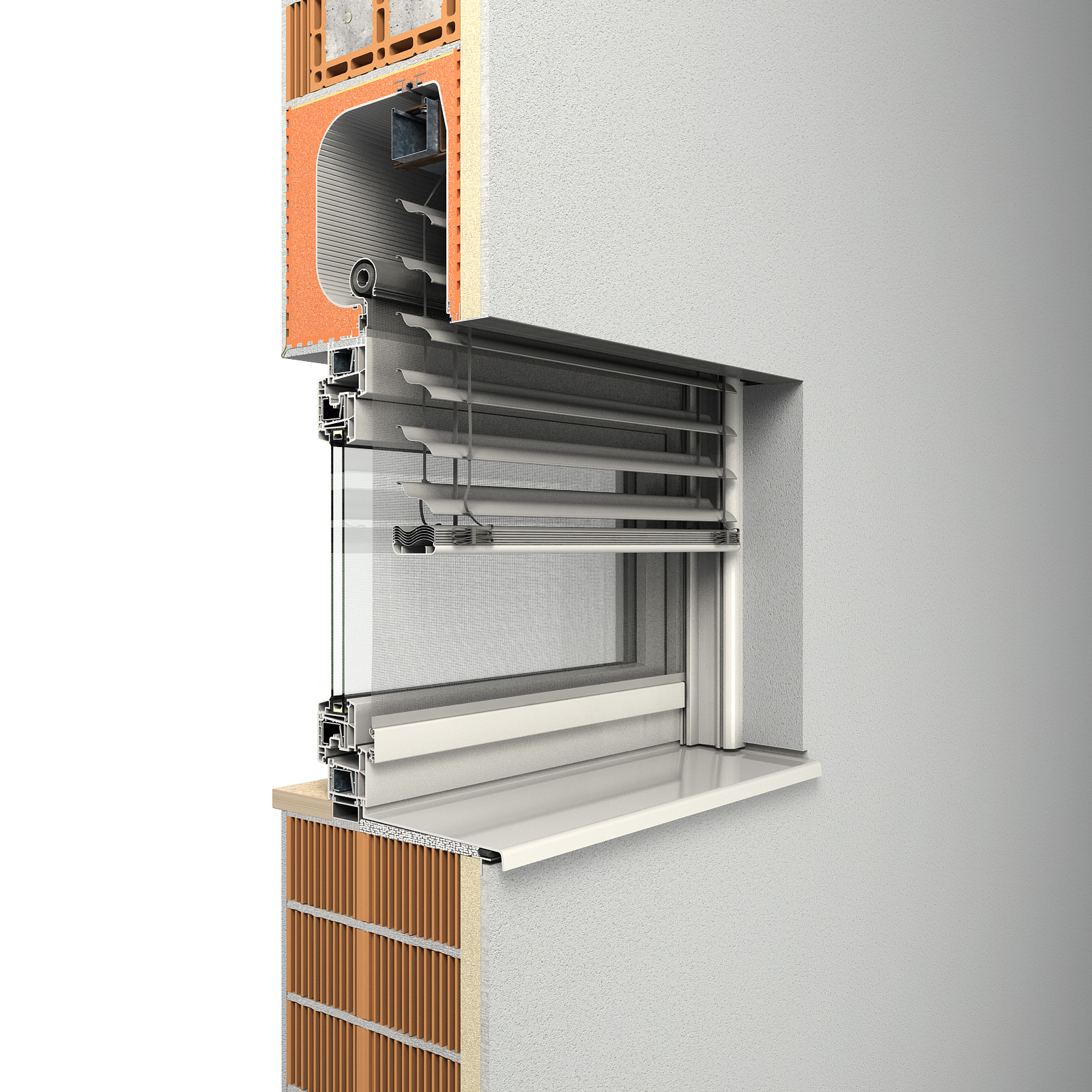 Fenster und Aufsatzraffstoren bilden eine Einheit, denn die Raffstoren werden direkt auf das Fenster montiert und in einem Arbeitsgang eingesetzt. Auf diese Weise verschwinden sie später praktisch unsichtbar in der Fassade. Die Sonnenschutzsysteme passen auf jeden Fenstertyp und schließen perfekt ab. Zugluft und damit Wärmeenergieverlust sind weitestgehend ausgeschlossen. Die hochwertigen Kunststoffbauteile sind witterungs- und UV-beständig.