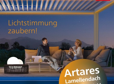 Sicheren Sie sich beim Kauf Ihres Artares Lamellendachs von weinor das Ambiente-Paket mit stimmungsvollem, farbigem Ambiente-Licht und Funksteuerung zum sagenhaften Aktionspreis von nur 1.599,– € statt 4.761,– € inkl. 19% MwSt.