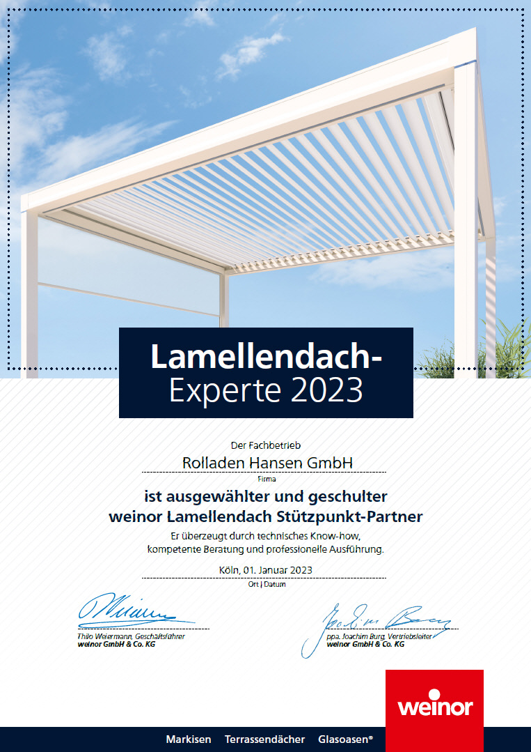 Geschlossen bieten die Lamellen einen zuverlässigen Wetterschutz. Außerdem lassen sich bei Sonne tolle Licht- und Schattenspiele auf der Terrasse erzeugen – je nach Öffnungswinkel der Lamellen.